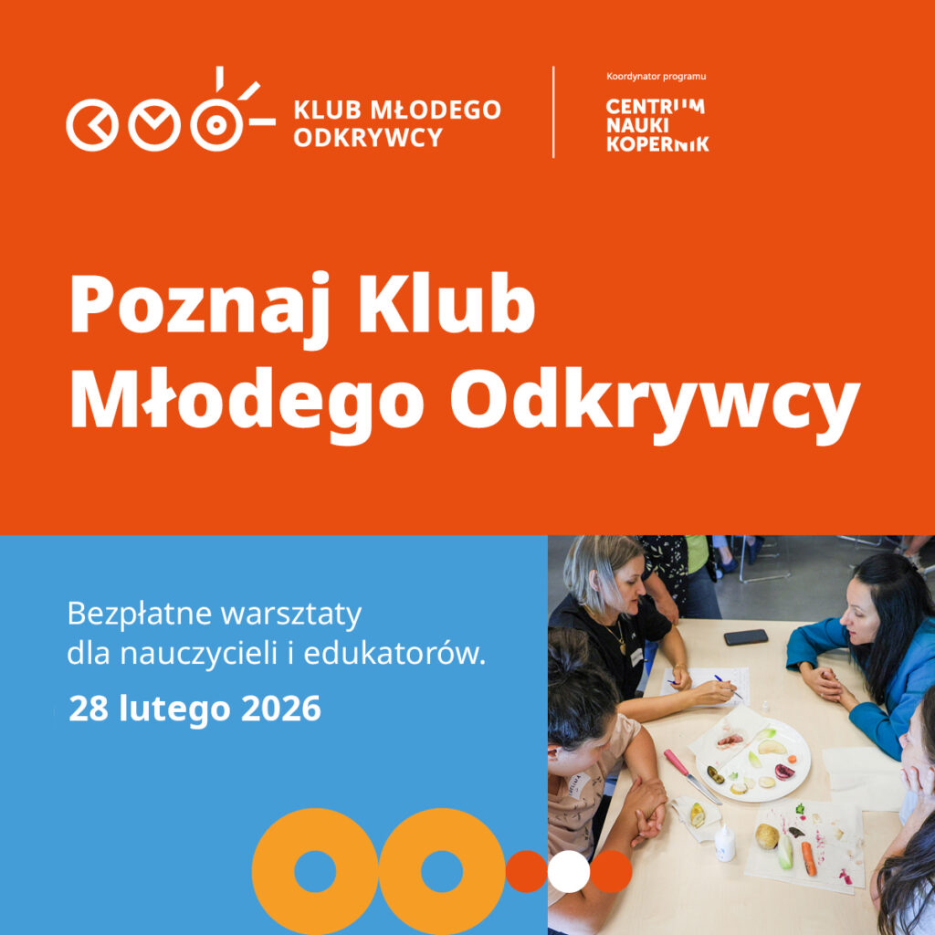 Zapraszamy na całodniowe, bezpłatne szkolenie realizowane w ramach współpracy z Centrum Nauki Kopernik w Warszawie. Podczas warsztatów zapoznamy Państwa z ideą Klubów Młodego Odkrywcy KMO, przedstawimy korzyści z członkostwa w międzynarodowym programie KMO. To zajęcia wypełnione wspólnym eksperymentowaniem, pracą grupową i dyskusjami.